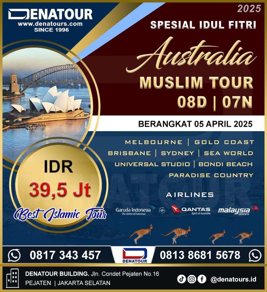 Jika kamu ingin menikmati perjalanan paket tour muslim australia idul fitri 2025 tanpa khawatir soal kenyamanan dan fasilitas, Denatour siap membantu! Kami menyediakan layanan profesional dan paket perjalanan yang telah dipercaya oleh banyak wisatawan. Hubungi tim marketing kami yang tersedia 24 jam untuk mendapatkan informasi lebih lanjut dan pemesanan. Yuk, wujudkan liburan impianmu bersama Denatour!